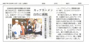 今回つくったオリジナルカップラーメンは、10月に学校で披露・配付される予定です。